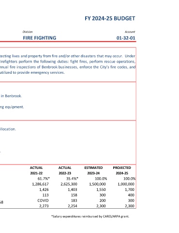 *Salary expenditures reimbursed by CARES/ARPA grant.