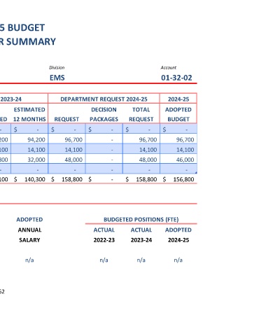 CLASSIFICATION ACTUAL ACTUAL BUDGETED 12 MONTHS REQUEST PACKAGES REQUEST BUDGET