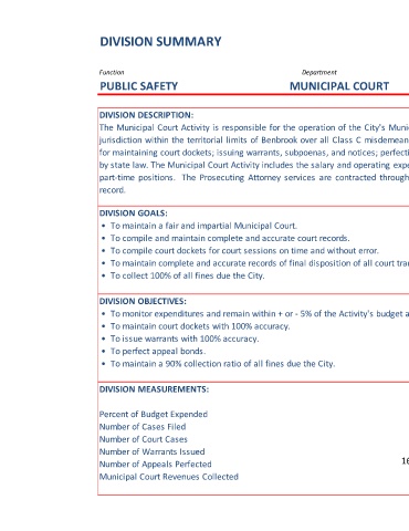 part-time positions. The Prosecuting Attorney services are contracted through the City Attorney. In 2005, the Benbrook Municipal Court became a court of