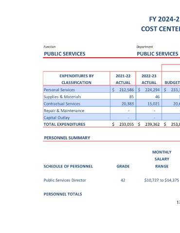 Public Services Director 42 $10,727 to $14,375 $ 172,499 1.0 1.0 1.0