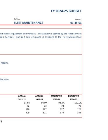 PUBLIC SERVICES SUPPORT SERVICES FLEET MAINTENANCE 01-45-01