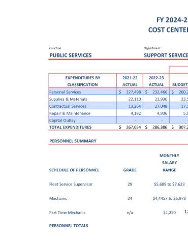 PUBLIC SERVICES SUPPORT SERVICES FLEET MAINTENANCE 01-45-01