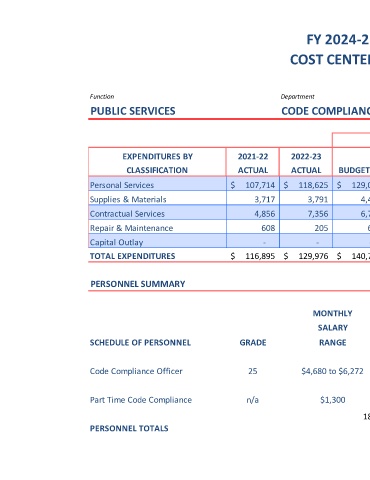 Code Compliance Officer 25 $4,680 to $6,272 $ 75,261 1.0 1.0 1.0