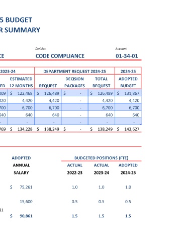 Code Compliance Officer 25 $4,680 to $6,272 $ 75,261 1.0 1.0 1.0