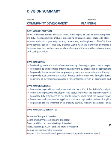 development policies. The City Planner works with the Benbrook Economic Development Corporation and the Chamber of Commerce to provide potential