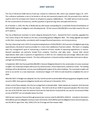 The City of Benbrook Debt Service Fund was created by Ordinance 404, which was adopted August 25, 1975.