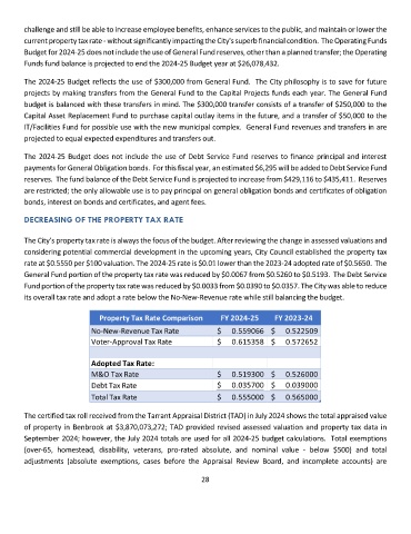 current property tax rate - without significantly impacting the City's superb financial condition. The Operating Funds