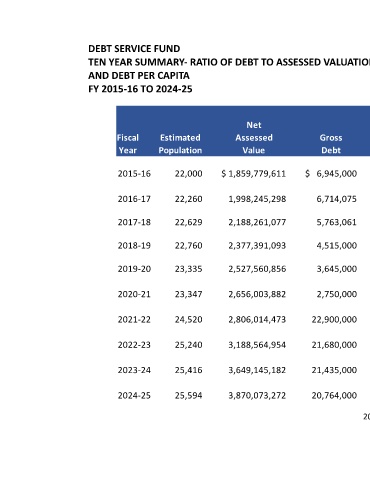 TEN YEAR SUMMARY- RATIO OF DEBT TO ASSESSED VALUATIONS