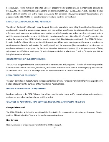 The 2024-25 Budget reflects the continuation of current services and programs. The City of Benbrook provides