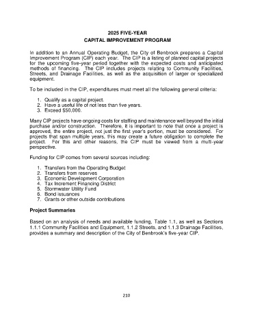 provides a summary and description of the City of Benbrook’s five-year CIP.
