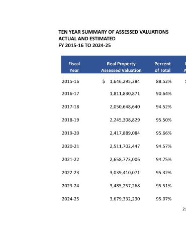 TEN YEAR SUMMARY OF ASSESSED VALUATIONS