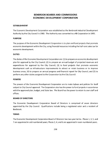 The Economic Development Corporation was established as the Benbrook Industrial Development