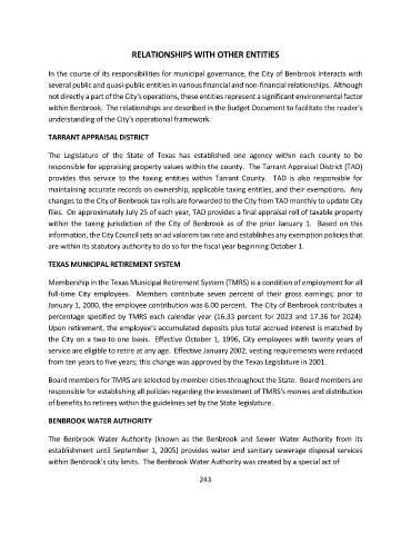 within Benbrook. The relationships are described in the Budget Document to facilitate the reader's