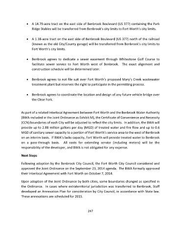 • A 14.79-acre tract on the east side of Benbrook Boulevard (US 377) containing the Park