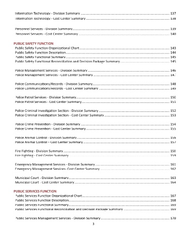 Police Management Services - Cost Center Summary ................................................................................... 147