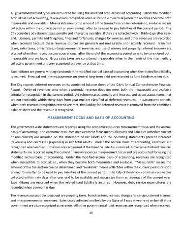 MEASUREMENT FOCUS AND BASIS OF ACCOUNTING