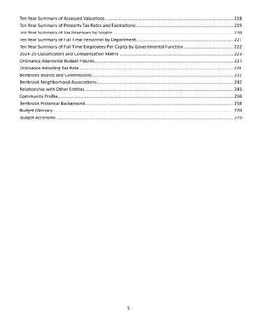 Ten Year Summary of Full Time Personnel by Department ............................................................................. 221