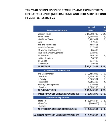 TEN YEAR COMPARISON OF REVENUES AND EXPENDITURES