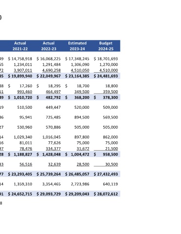 Actual Actual Actual Estimated Budget