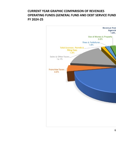 CURRENT YEAR GRAPHIC COMPARISON OF REVENUES OPERATING FUNDS (GENERAL FUND AND DEBT SERVICE FUND) FY 2024-25 60