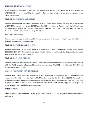to $100,000. Other revenue including animal control fees, street, park lease and usage, and sale of goods is