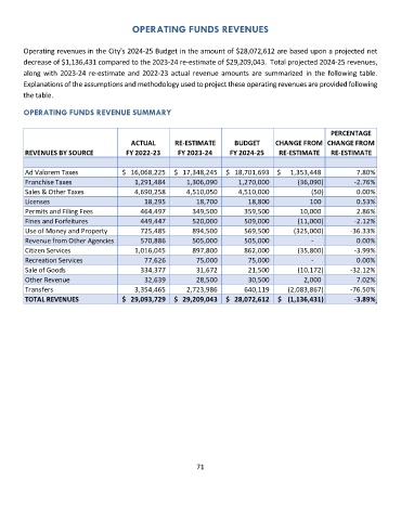 Operating revenues in the City's 2024-25 Budget in the amount of $28,072,612 are based upon a projected net