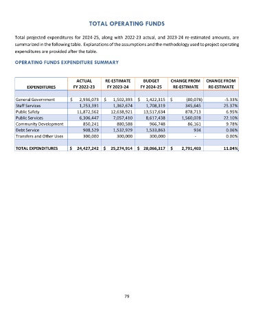 OPERATING FUNDS EXPENDITURE SUMMARY
