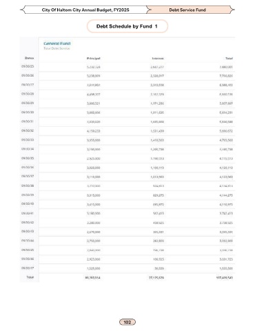 City Of Haltom City Annual Budget, FY2025 Debt Service Fund Debt Schedule by Fund 1