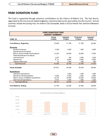 This fund is supported through voluntary contributions by the Citizens of Haltom City. The Park Board,