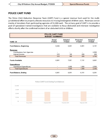 The Police Child Abduction Response Team (CART) Fund is a special revenue fund used for the multi-
