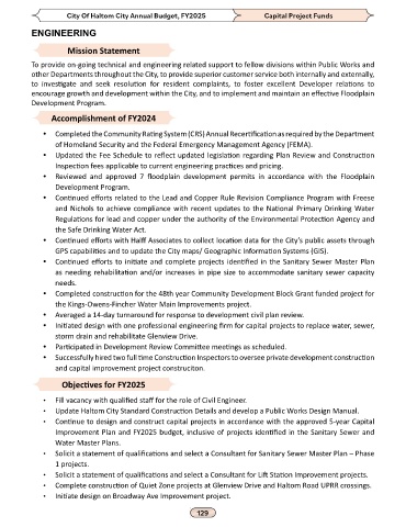Improvement Plan and FY2025 budget, inclusive of projects identified in the Sanitary Sewer and