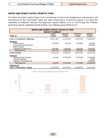 WATER AND SEWER CAPITAL PROJECTS FUND