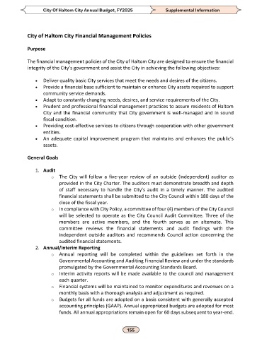 The financial management policies of the City of Haltom City are designed to ensure the financial