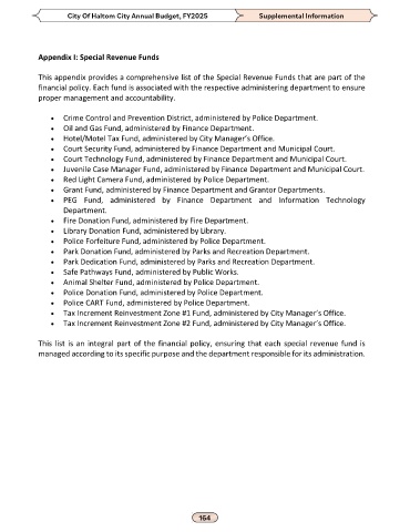 This appendix provides a comprehensive list of the Special Revenue Funds that are part of the