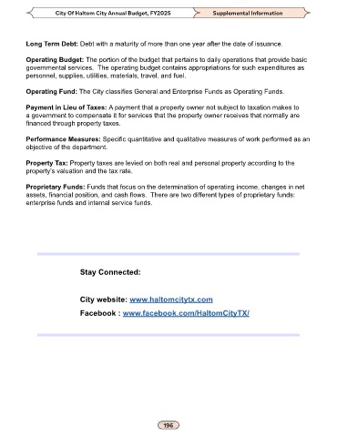 City Of Haltom City Annual Budget, FY2025 Supplemental Information