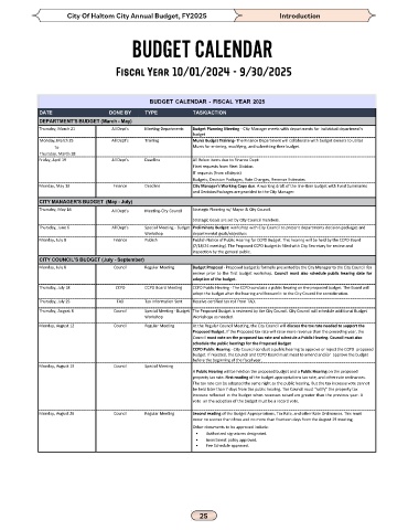 BUDGET CALENDAR - FISCAL YEAR 2025
