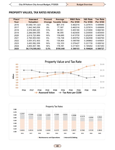 PROPERTY VALUES, TAX RATES REVENUES