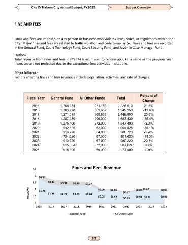 City. Major fines and fees are related to traffic violation and code compliance. Fines and fees are recorded