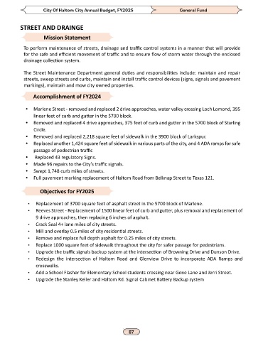 City Of Haltom City Annual Budget, FY2025 General Fund