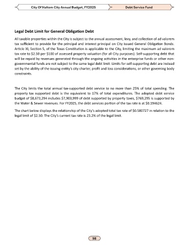 legal limit of $2.50. The City’s current tax rate is 23.2% of the legal limit.