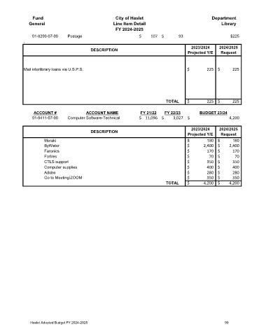 Mail interlibrary loans via U.S.P.S. $ 225 $ 225