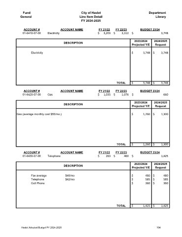 01-6410-07-00 Electricity $ 3,203 $ 3,312 $ 3,748