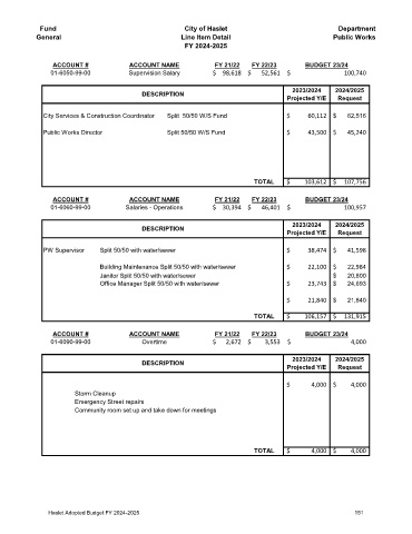 PW Supervisor Split 50/50 with water/sewer $ 38,474 $ 41,598