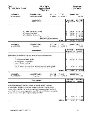 On Call Water Employee weekly stipend ($100/week) rotating staff $ 5,200 $ 5,200