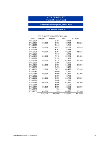 Page 220 - CityofHasletFY25AnnualBudget