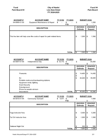 This line item will help cover the costs of repair for park related items. $ 1,500 $ 1,500