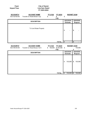 06-5120-00-00 Transfer to Water/Sewer Cap $ - $ - $ -