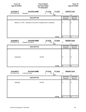 Haslet Adopted Budget FY 2024-2025 244