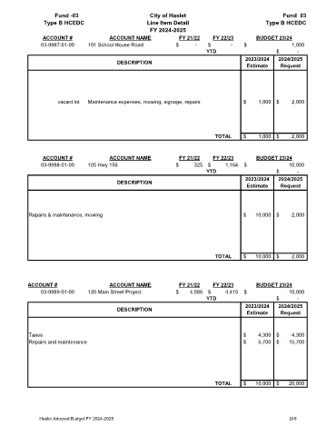 vacant lot Maintenance expenses, mowing, signage, repairs $ 1,000 $ 2,000