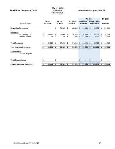 Page 277 - CityofHasletFY25AnnualBudget